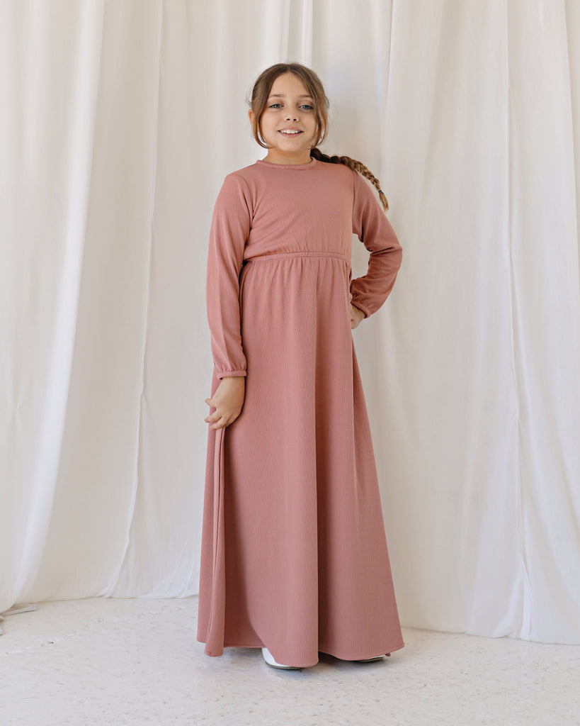 Amara Dress is the perfect daily modest dress for girls. Crafted with elasticated waist, fitted bodice, and an a line skirt very comfortable and easy to wear. It also comes with a zipper on the back for ease of wear.