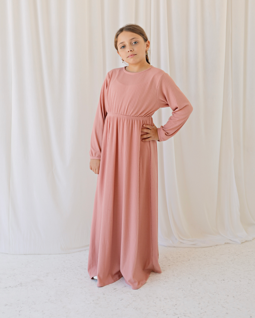 Amara Dress is the perfect daily modest dress for girls. Crafted with elasticated waist, fitted bodice, and an a line skirt very comfortable and easy to wear. It also comes with a zipper on the back for ease of wear.