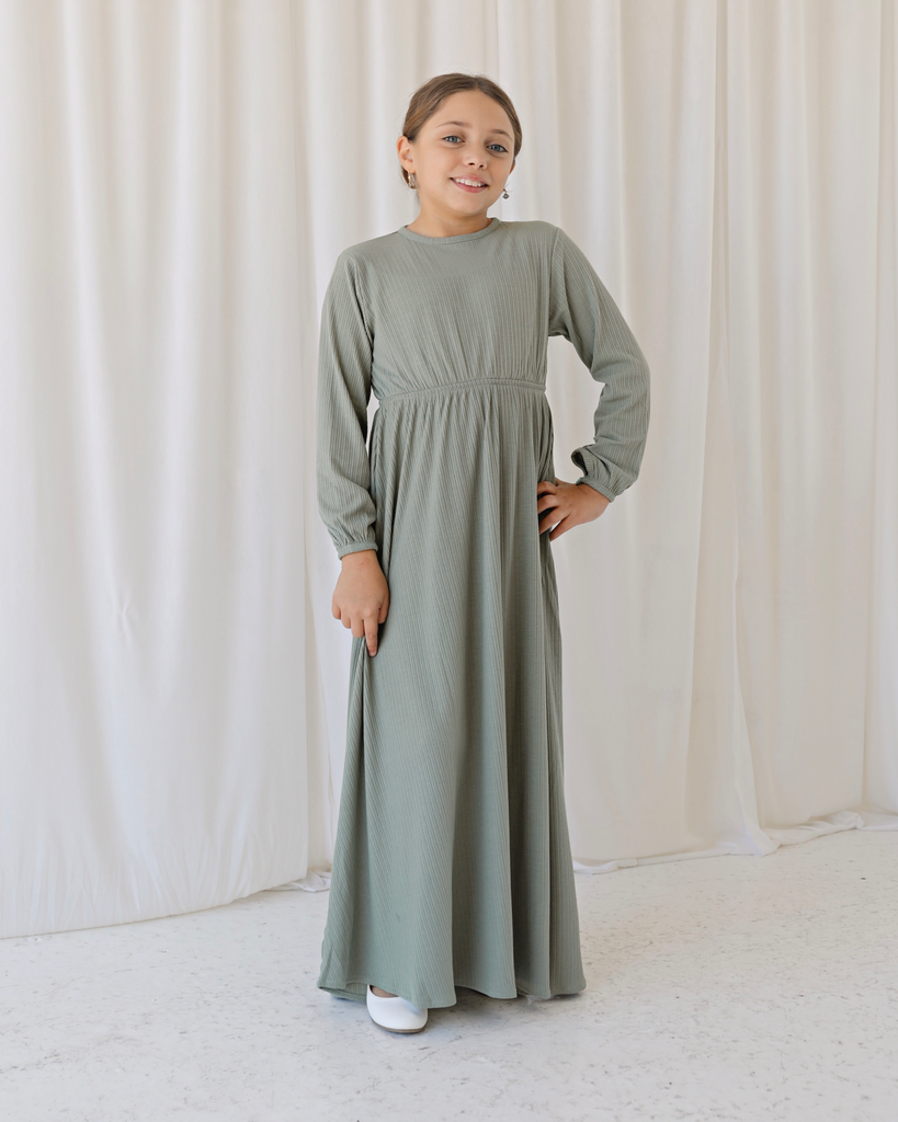 Amara Dress is the perfect daily modest dress for girls. Crafted with elasticated waist, fitted bodice, and an a line skirt very comfortable and easy to wear. It also comes with a zipper on the back for ease of wear.