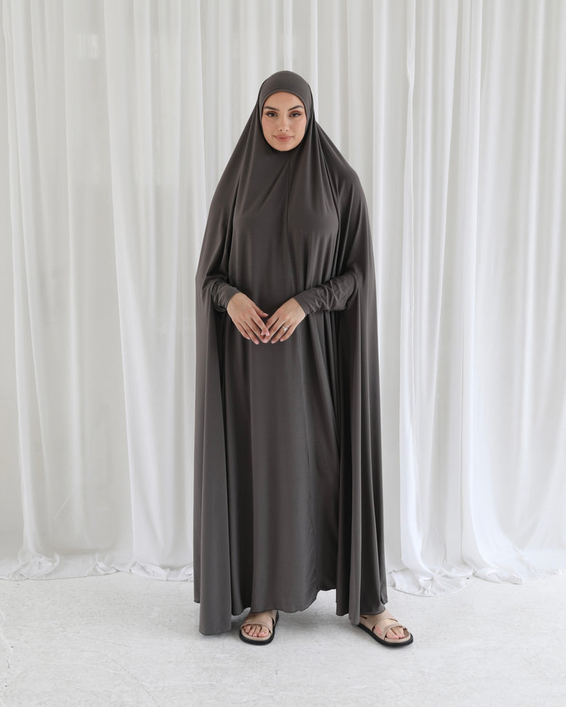 Essential Jilbab crafted with high-quality lycra a must-have for every muslim wardrobe. Can be worn for prayer as well as outings. Easy to wear, effortless and comfortable. Convenient to wear daily or for Ramadan Nights.