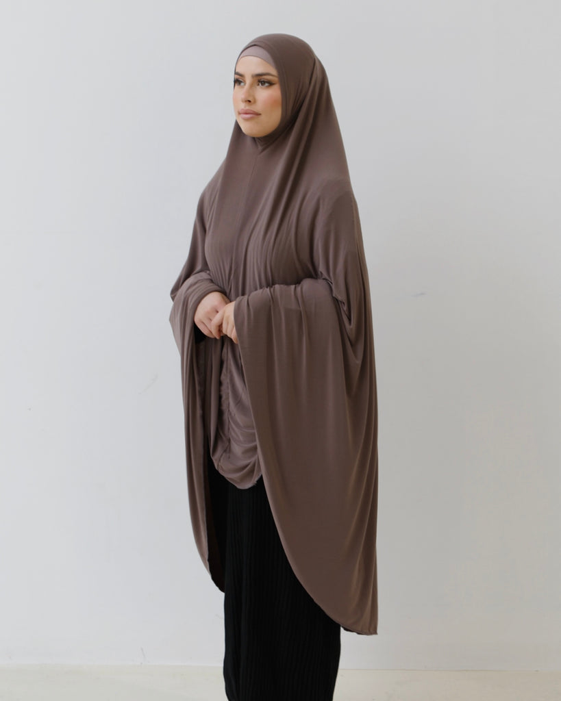 Essential Jilbab crafted with high-quality lycra a must-have for every muslim wardrobe. Can be worn for prayer as well as outings. Easy to wear, effortless and comfortable. Convenient to wear daily or for Ramadan Nights.