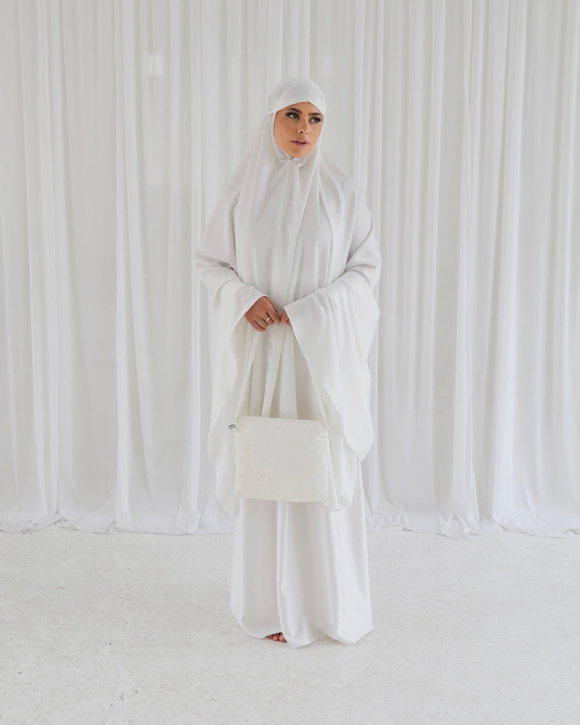 A Soft Sateen Prayer Set designed for ultimate coverage and comfort. Crafted from a soft and fluid sateen fabric. Silky soft, effortless, opaque, and hassle free design suitable to be worn in colder months.