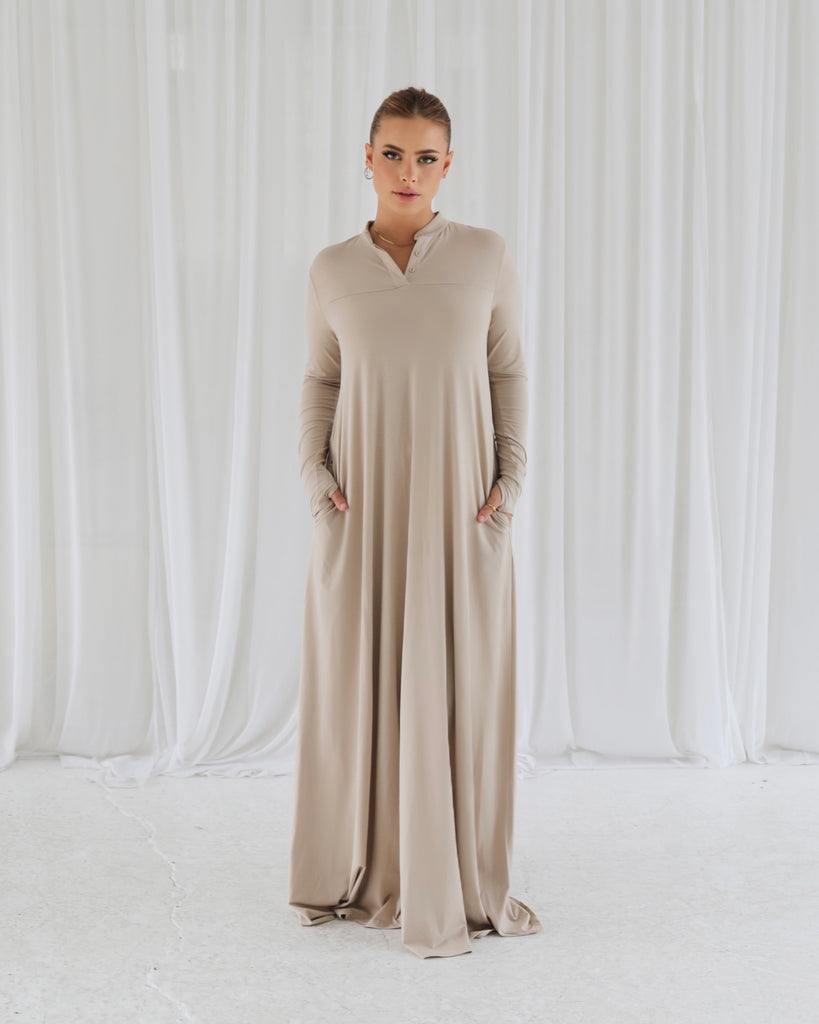 Discover the buttery essential dress of your dreams! Everyday timeless staple piece designed for your ultimate comfort and style. Wear it with your favourite hijabs of choice and sneakers, with a pair of heels or with your favourite pair of sandals. Crafted from our signature stretchy, buttery, breathable and soft fabric that we know you will love. Our team has tried and tested this dress for durability and colour fastness for longer sustainable wear. We guarrantee it will be your go-to piece for all seasons.