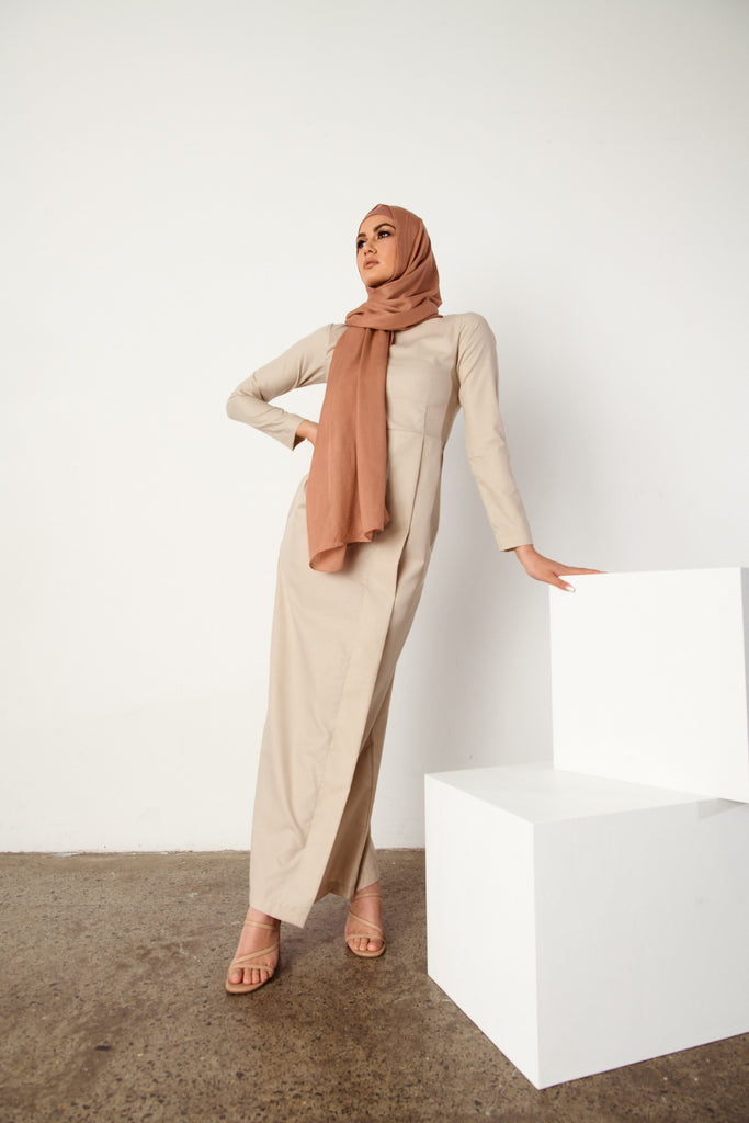 - Model is wearing size 8, paired with our Organic Pure Silk Chiffon Headscarf