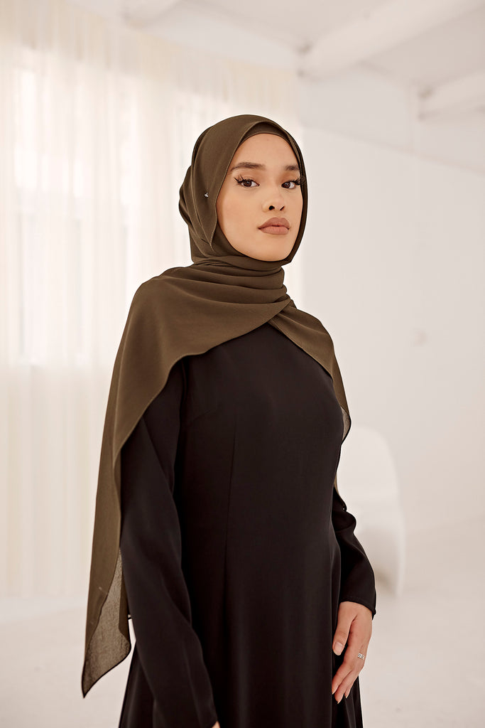 Slim Line Premium Abaya tailored with the same premium fabrication as our Premium Long Line Abaya. The waist and bust darts gives a slimming silhouette that flatters different body types. Made out of material that is non-sheer, breathable, wrinkle-resistant, luxurious to the touch, and stretchy perfect for daily wear. Very versatile, can be dressed up with gold accessories for an effortless evening wear, or dressed down with a pair of your favourite sneakers.