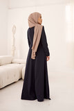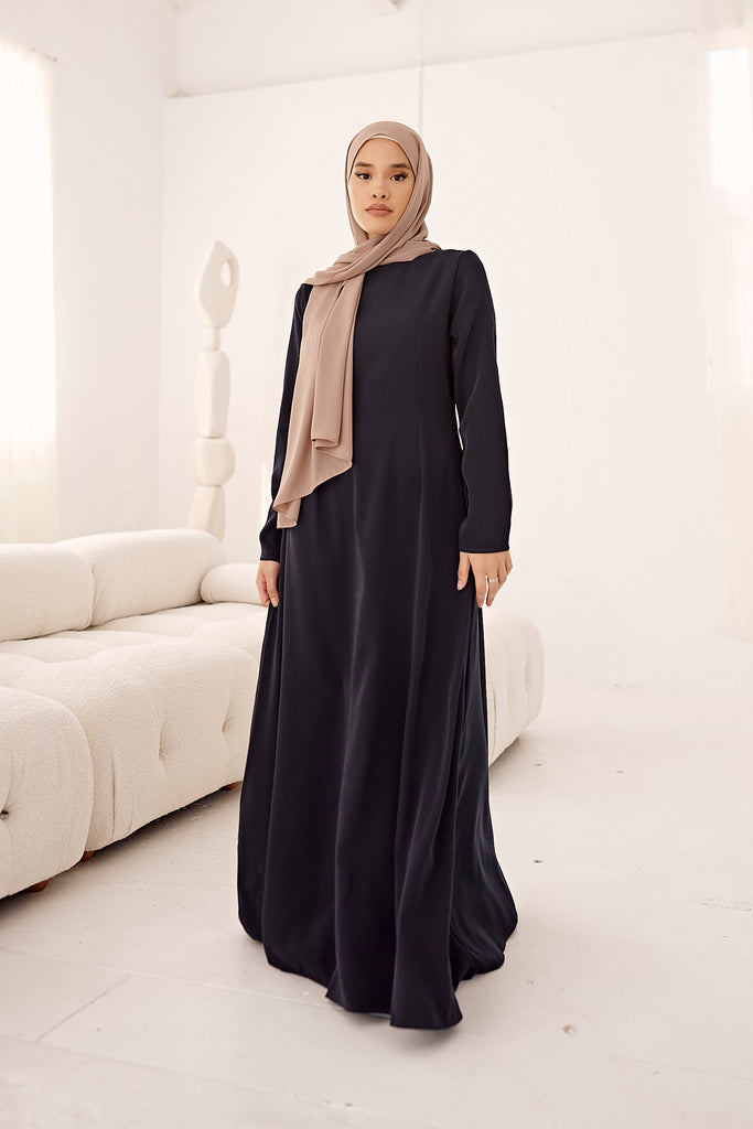 Slim Line Premium Abaya tailored with the same premium fabrication as our Premium Long Line Abaya. The waist and bust darts gives a slimming silhouette that flatters different body types. Made out of material that is non-sheer, breathable, wrinkle-resistant, luxurious to the touch, and stretchy perfect for daily wear. Very versatile, can be dressed up with gold accessories for an effortless evening wear, or dressed down with a pair of your favourite sneakers.