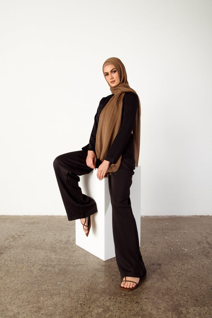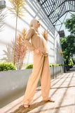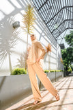 Sienna Pants are part of a co-ord set, can be worn with any of our Sienna Top that are sold separately. It has a high-rise waist, deep side pockets, and zip-side fastening. The cut is wide leg with regular fit on the waist. We really recommend you to measure yourself for an accurate sizing option.