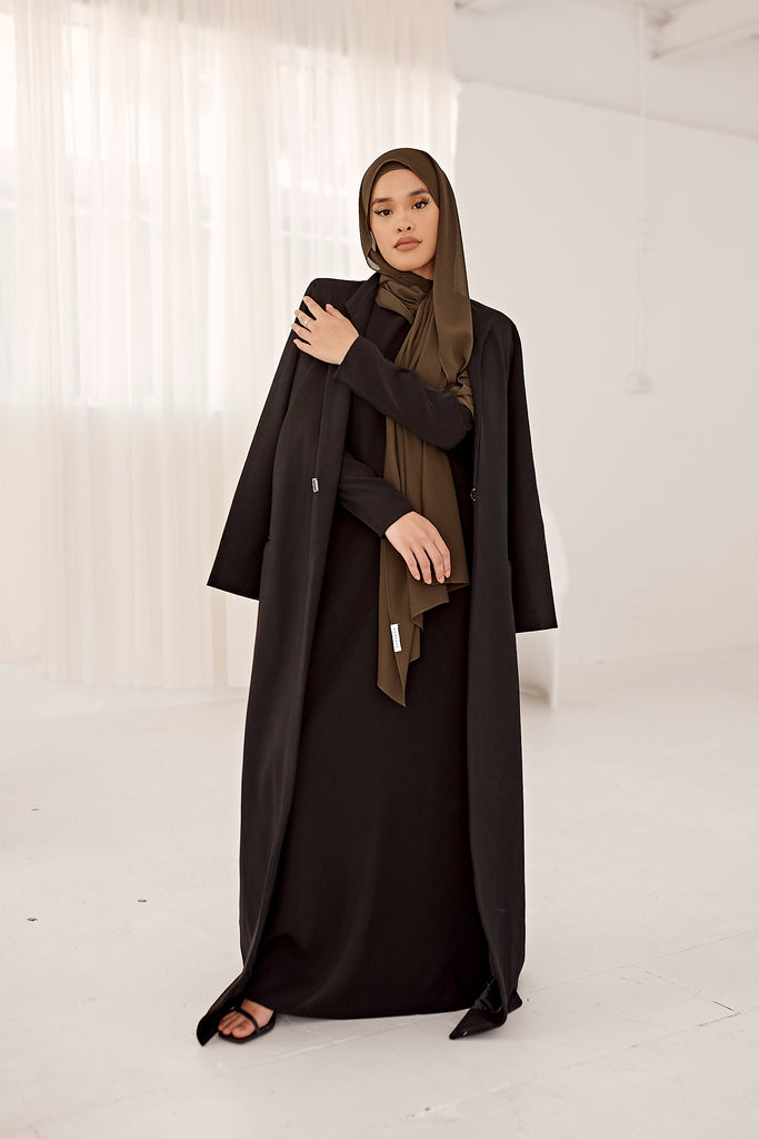 The Longline blazer coat is one of our exclusive designs. It features a notched collar, side pockets, tailored fit, and a center hook and eye closure. The design gives it a modern look, perfect for formal occasions or work outfit. Pair it with one of our slip dresses or a blouse and wide-legged pants. This signature piece will make you look sophisticated effortlessly.