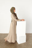 Tuscany Dress is a button up dress, slightly flared out, made from cotton blend fabric, highly breathable and light. Comes with a tie belt, have inseam side pockets.