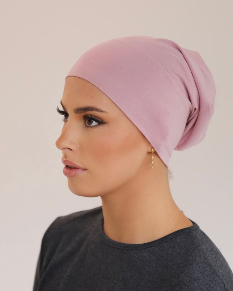 Our cotton tube undercap is suitable to be worn underneath any hijab material. It maintain its shape while providing the stretch you need to allow the undercap to fit comfortably. It is non slip and durable. We designed it with Japanese cotton so it is breathable and prevent hair loss and scalp irritation.