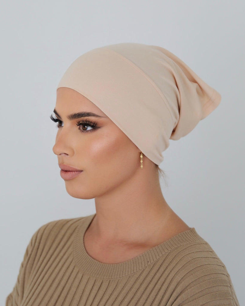 Our cotton tube undercap is suitable to be worn underneath any hijab material. It maintain its shape while providing the stretch you need to allow the undercap to fit comfortably. It is non slip and durable. We designed it with Japanese cotton so it is breathable and prevent hair loss and scalp irritation.