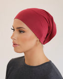 Our cotton tube undercap is suitable to be worn underneath any hijab material. It maintain its shape while providing the stretch you need to allow the undercap to fit comfortably. It is non slip and durable. We designed it with Japanese cotton so it is breathable and prevent hair loss and scalp irritation.